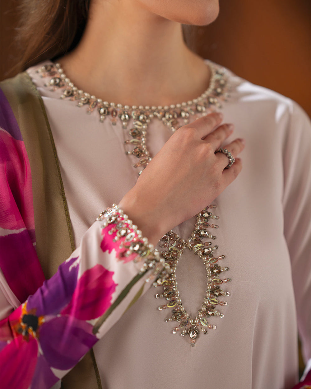 • Shirt: Digital Printed Shirt with Handwork Neck